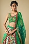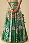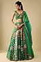 Featuring a green lehenga in silk base. It is paired with a blouse and a dupatta. Accentuate it with kundan polki or meenakari jewellery and embellished heels for a mehendi, wedding or engagement ceremony.