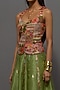Featuring a green corset in silk and organza base with embroidery. It is paired with a skirt. Accentuate with statement earrings and heels for festive occasions or wedding ceremonies.