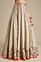 Featuring an ivory lehenga in silk and organza base with embroidery. It is paired with an embroidered blouse and an embroidered dupatta. Accentuate the designer lehenga with kundan polki jewellery, embellished heels and a potli bag for a bridal look, Perfect wear for your wedding or engagement ceremony.