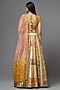 Featuring a gold lehenga in silk base with embroidery. It is paired with an embroidered blouse and an embroidered dupatta. Accentuate the designer lehenga with kundan polki jewellery, embellished heels and a poti bag for a bridal look, Perfect for your wedding, sangeet or engagement ceremony.