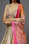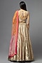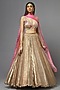 Featuring a metal lehenga in silk base. It is paired with a blush blouse and a dupatta. Accentuate it with statement jewellery and heels for a wedding or engagement cermeony.