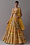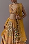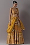 Featuring a mustard lehenga in silk brocade and banarasi base. It is paired with a silk blouse and an organza dupatta. Accentuate with statement jewellery and heels for a wedding, sangeet or haldi ceremony.