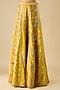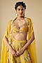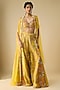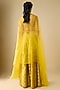 Featuring a mustard cape in silk base. It is paired with a blouse and sharara pants. Accentuate it with meenakari jewellery and block heels for festive occasions or haldi functions.