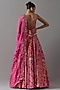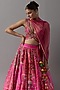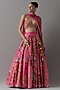 Featuring a pink lehenga in raw silk, banarasi and brocade base. It is paired with a brocade blouse and an organza dupatta. Accentuate with statement jewellery and heels for a wedding, sangeet or engagement ceremony.