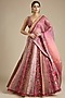 Featuring a pink lehenga in silk, brocade and organza base with embroidery. It is paired with an embroidered blouse and an embroidered dupatta. Accentuate the designer lehenga with kundan polki jewellery, embellished heels and a potli bag for a bridal look, Perfect wear for your wedding or engagement ceremony.