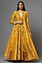 Featuring a yellow anarkali in silk base. It is paired with a cape. Accentuate it with statement jewellery and heels for an engagement or haldi ceremony.