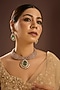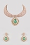 Featuring a champagne gold finish handcrafted choker necklace studded with kundan polki and emerald green stone, set in mixed metal. It is paired with a matching pair of earrings. Add a touch of sparkle to your ensemble, perfect for weddings or festive celebrations.