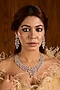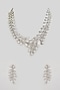 Featuring a gold finish necklace studded with cubic zirconia, set in mixed metal. It is paired with a matching pair of earrings. Ideal for festive occasions, weddings, or elevating your elegant evening look.