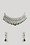 Featuring a gold finish handmade necklace studded with emeralds and diamond, set in mixed metal. It is paired with a matching pair of earrings. This necklace set is a testament to refined taste and timeless style, ideal for festive occasions or wedding ceremonies.