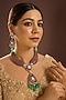 Featuring a gold finish handcrafted choker necklace studded with kundan polki, ruby beads and emerald drops, set in mixed metal. It is paired with a matching pair of earrings. Add a touch of sparkle to your ensemble, perfect for weddings or festive celebrations.