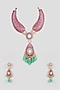 Gold Finish Emerald Drop & Ruby Beaded Handcrafted Choker Necklace Set