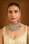Featuring a gold finish choker necklace studded with emerald green cubic zirconia, set in mixed metal. It is paired with a matching pair of earrings. Ideal for festive occasions, weddings, or elevating your elegant evening look.