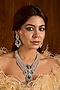 Featuring a gold finish necklace studded with emerald green cubic zirconia, set in mixed metal. It is paired with a matching pair of earrings. Ideal for festive occasions, weddings, or elevating your elegant evening look.