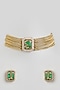 Gold Finish Emerald Green Kundan Polki Choker Necklace Set