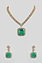 Gold Finish Emerald Green Stone & Kundan Polki Pendant Necklace Set