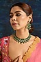 Featuring a gold finish necklace studded with emerald synthetic stones, set in mixed metal. It is paired with a matching pair of earrings. Perfect for festive occasions, weddings or cultural events, this jewellery is a wardrobe must for those who love to shine effortlessly.