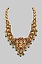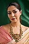 Featuring a gold finish temple necklace studded with green beads, set in mixed metal. Perfect for festive occasions, weddings or cultural events, this jewellery is a wardrobe must for those who love to shine effortlessly.