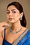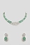 Featuring a gold finish necklace studded with green cubic zirconia, set in mixed metal. It is paired with a matching pair of earrings. Ideal for festive occasions, weddings, or elevating your elegant evening look.
