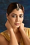 Featuring a gold finish maangtikka studded with green kundan polki, set in mixed metal. Perfect for festive occasions, weddings or cultural events, this jewellery is a wardrobe must for those who love to shine effortlessly.