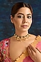 Featuring a gold finish choker necklace studded with green stones and pearls, set in mixed metal. Perfect for festive occasions, weddings or cultural events, this jewellery is a wardrobe must for those who love to shine effortlessly.