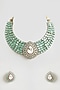 Featuring a gold finish necklace studded with green zircons, set in mixed metal. It is paired with a matching pair of earrings. Ideal for festive occasions, weddings, or elevating your elegant evening look.