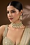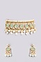 Featuring a gold finish choker necklace studded with kundan polki, pearls and aqua stones, set in mixed metal. It is paired with a matching pair of earrings. Perfect choice for weddings or other Indian festivities.