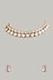 Featuring a gold finish choker necklace studded with kundan polki, set in mixed metal. It is paired with a matching pair of earrings. Ideal for festive occasions, weddings, or elevating your elegant evening look.