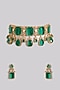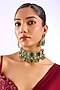 Featuring a gold finish choker necklace studded with kundan polki and emerald green square stones, set in mixed metal. It is paired with a matching of oversized earrings. Perfect wear for festive occasions or wedding ceremony.