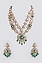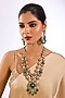 Gold Finish Kundan Polki & Emerald Green Stone Long Layered Necklace Set