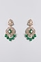 Featuring a gold finish long layered necklace studded with kundan polki and emerald green stones, set in mixed metal. It is paired with a matching of chandbali earrings. Perfect wear for festive occasions or wedding ceremony.