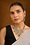 Featuring a gold finish handmade necklace studded with kundan polki and emerald green stones, set in mixed metal. It is paired with a matching pair of earrings. This necklace set is a testament to refined taste and timeless style, ideal for festive occasions or wedding ceremonies.