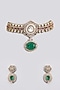 Featuring a gold finish choker necklace studded with kundan polki, emerald green stones and pearls, set in mixed metal. It is paired with a matching pair of earrings. Perfect choice for weddings or other Indian festivities.