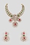 Featuring a gold finish handcrafted choker necklace studded with kundan polki, ruby and emerald stones, set in mixed metal. It is paired with a matching pair of earrings. Add a touch of sparkle to your ensemble, perfect for weddings or festive celebrations.