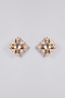 Featuring a pair of gold finish floral stud earrings studded with kundan polki, set in mixed metal. Perfect for wedding celebrations, festive soirees or cultural gatherings adding a regal charm to every look.