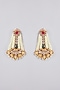 Featuring a pair of gold finish chandelier earrings studded with kundan polki and green beads, set in mixed metal. Perfect for wedding celebrations, festive soirees or cultural gatherings adding a regal charm to every look.