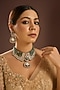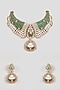 Featuring a gold finish pear drop pendant choker necklace studded with kundan polki and green beads, set in mixed metal. It is paired with a matching pair of earrings. Add a touch of sparkle to your ensemble, perfect for weddings or festive celebrations.