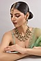 Featuring a gold finish necklace studded with kundan polki and green onyx, set in mixed metal. It is paired with a matching pair of earrings. Perfect for grand occasions like weddings and traditional festivities.