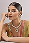 Featuring a gold finish necklace studded with kundan polki and green onyx, set in mixed metal. It is paired with a matching pair of earrings. Perfect for grand occasions like weddings and traditional festivities.
