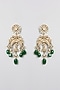 Gold Finish Kundan Polki & Green Stone Chandbali Earrings