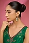 Featuring a pair of gold finish dangler earrings studded with kundan polki, green and white semi-precious stones, set in mixed metal. Perfect wear for festive occasions or wedding ceremonies.