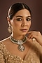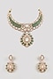 Featuring a gold finish handcrafted choker necklace studded with kundan polki, green stones and pearls, set in mixed metal. It is paired with a matching pair of earrings. Add a touch of sparkle to your ensemble, perfect for weddings or festive celebrations.