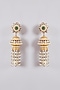Featuring a pair of gold finish jhumka earrings studded with pearls, kundan polki, pink and green stones, set in mixed metal. Perfect for wedding celebrations, festive soirees or cultural gatherings adding a regal charm to every look.