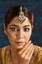 Featuring a gold finish maangtikka studded with kundan polki and green stones, set in mixed metal. Perfect for festive occasions, weddings or cultural events, this jewellery is a wardrobe must for those who love to shine effortlessly.