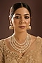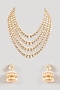 Featuring a gold finish handcrafted layered necklace studded with kundan polki, set in mixed metal. It is paired with a matching pair of jhumka earrings. Add a touch of sparkle to your ensemble, perfect for weddings or festive celebrations.
