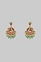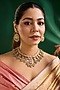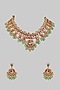 Featuring a gold finish necklace studded with kundan polki and multi-colored stones, set in mixed metal. It is paired with a matching pair of earrings. Perfect for festive occasions, weddings or cultural events, this jewellery is a wardrobe must for those who love to shine effortlessly.
