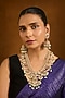 Featuring a gold finish necklace studded with kundan polki and pearl drops, set in mixed metal. It is paired with a matching pair of earrings. Ideal for festive occasions, weddings, or elevating your elegant evening look.