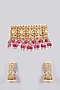 Featuring a gold finish choker necklace studded with kundan polki and red beads, set in mixed metal. It is paired with a matching pair of earrings. Perfect for wedding celebrations, festive soirees or cultural gatherings adding a regal charm to every look.
