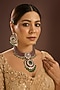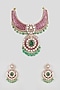Featuring a gold finish handcrafted choker necklace studded with kundan polki, pearls, ruby red and emerald green stones, set in mixed metal. It is paired with a matching pair of earrings. Add a touch of sparkle to your ensemble, perfect for weddings or festive celebrations.