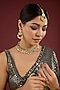 Featuring a gold finish choker necklace studded with kundan polki and ruby synthetic stones, set in mixed metal. It is paired with a matching pair of dangler earrings and a maangtikka. Perfect wear for festive occasions or wedding ceremonies.