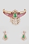 Featuring a gold finish handcrafted choker necklace studded with kundan polki, emerald and ruby stones, set in mixed metal. It is paired with a matching pair of earrings. Add a touch of sparkle to your ensemble, perfect for weddings or festive celebrations.